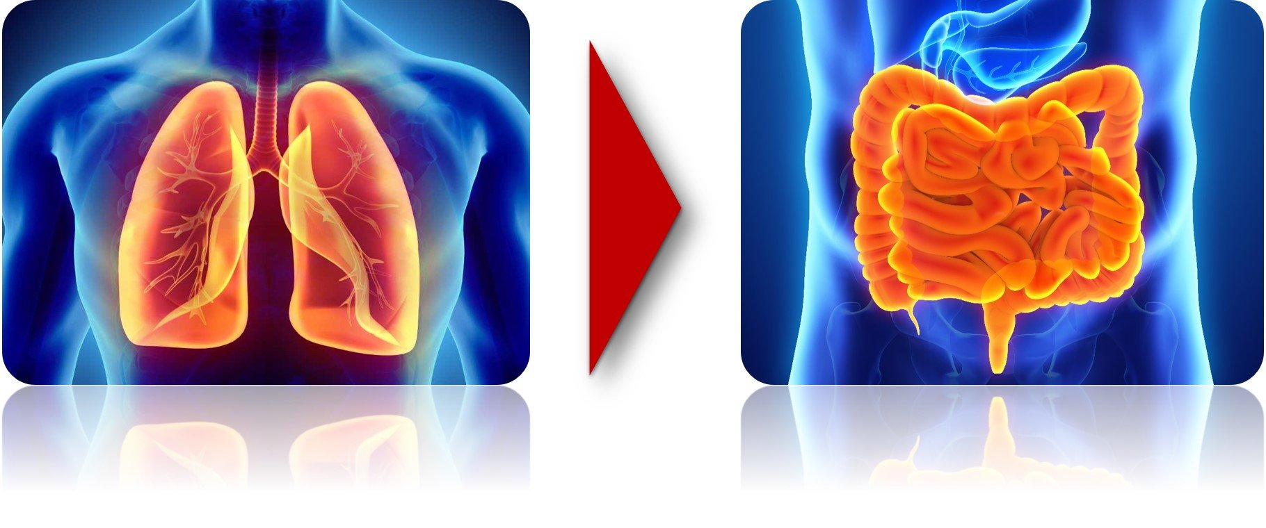 Instead of addressing the problem through the lungs, RESPILIQ™ uses the human intestine as a respiratory organ. The human intestine forms a highly effective CO2 exchange membrane. In the intestine, RESPILIQ™ can bind CO2 from intestinal fluid and excrete it naturally. Administered orally or rectally, RESPILIQ™ thus initiates a life-saving reduction of CO2 in the blood.